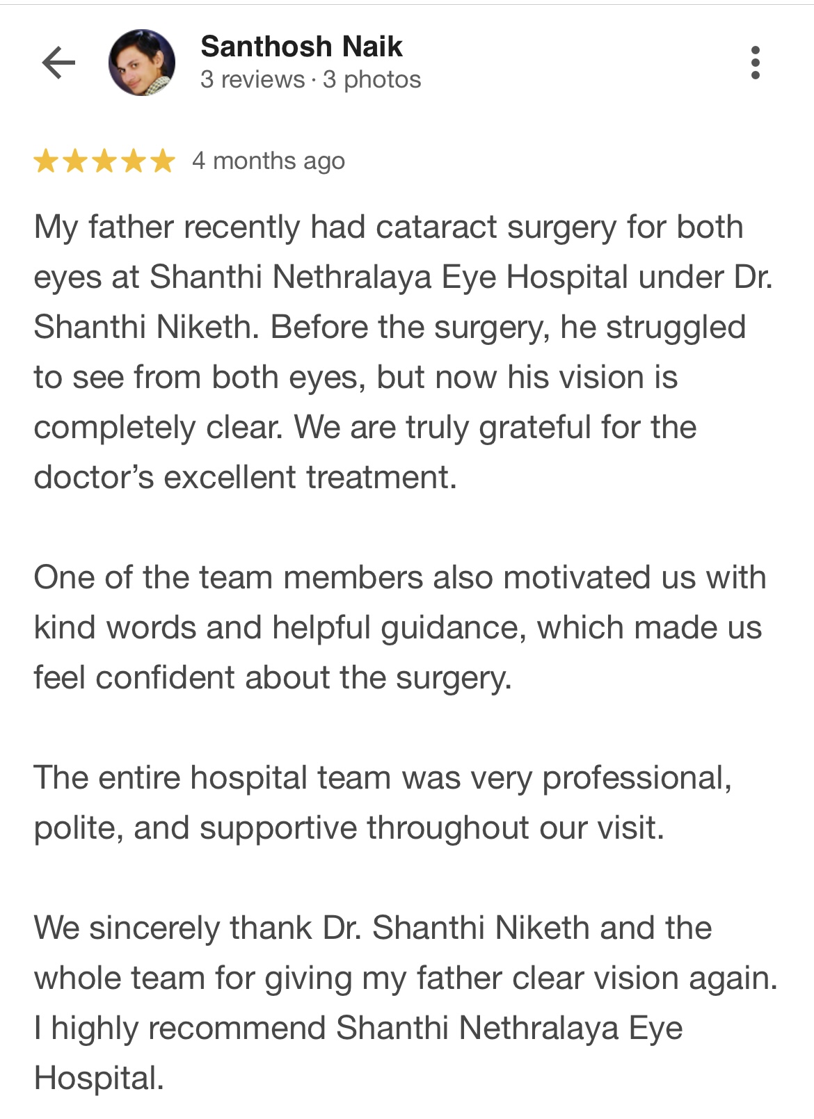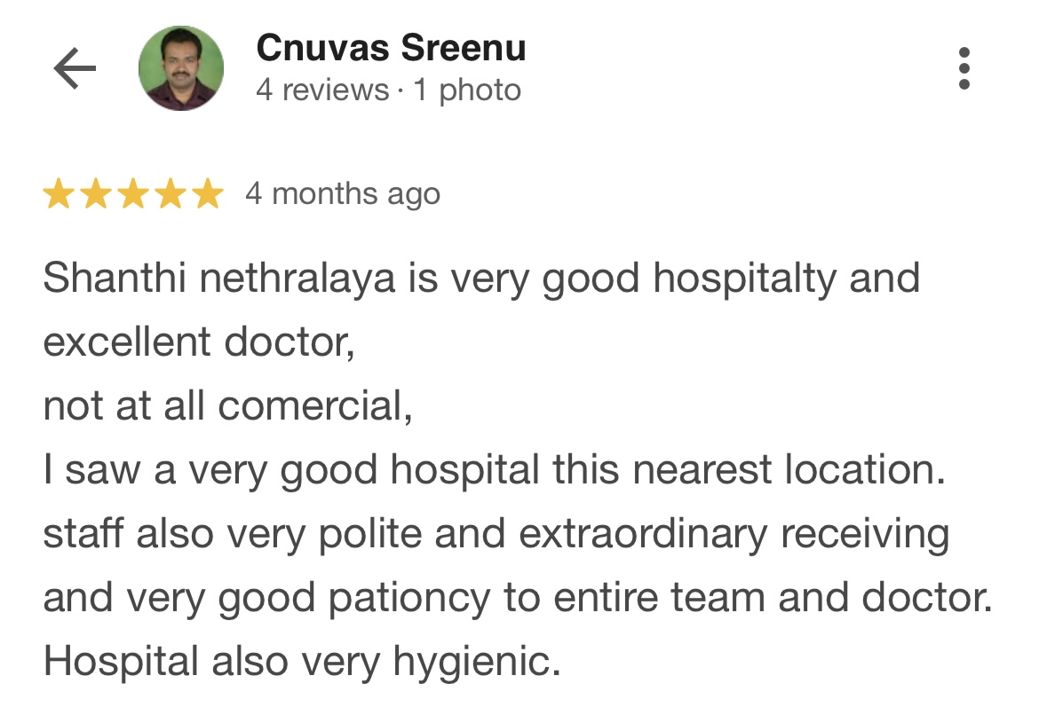 1)Open the Google Maps app on your smartphone or visit the Google Maps website on your computer browser. 2)In the search bar, type “Shanthi Nethralaya Eye Hospital” and press Enter or tap on the search icon. 3)Google Maps will display the location of Shanthi Nethralaya Eye Hospital on the map, along with additional information such as address, contact details, and reviews. 4)If you’re using the Google Maps app on your smartphone, you can tap the “Directions” button to get directions to the hospital from your current location.